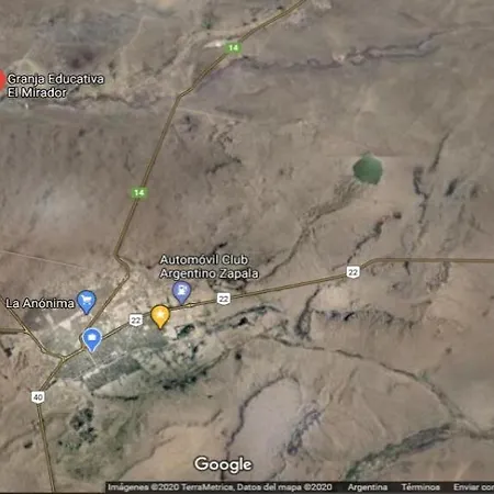 Der er 20 km mellem Zapala og Granja Educativa El Mirador Villa. - ❓